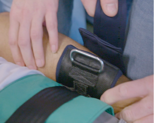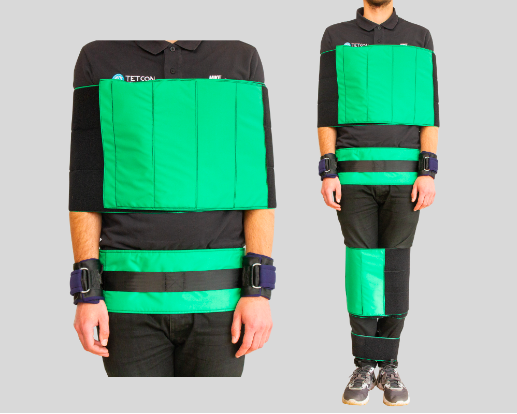 El sistema de transferencia VIC consta de tres correas diferentes que se colocan alrededor de los tobillos, las rodillas y el torso. Las muñecas se fijan mediante un innovador sistema de sujeción que