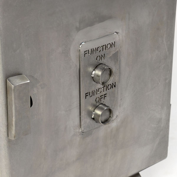 La carcasa del armario eléctrico complementario es de acero inoxidable y tiene el aspecto realista de un armario eléctrico real. El alumno acciona el interruptor principal para desenergizar el armario. La puerta se puede abrir con un giro de la manilla. En la caja hay un regulador de llama que dirige la llama a través de la abertura de la puerta. Se puede entrenar tanto con un extintor de espuma como con un extintor de CO2.