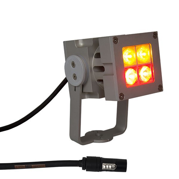 4 fuentes de luz LED se pueden encontrar en esta luminaria de 10 vatios: 2 rojo y 2 naranja. Estos LEDs están equipados con lentes muy especiales, resultando en un amplio resplandor rojo con un núcleo naranja. Por lo tanto, también es la configuración ideal para simular efectos de llama horizontal y vertical.